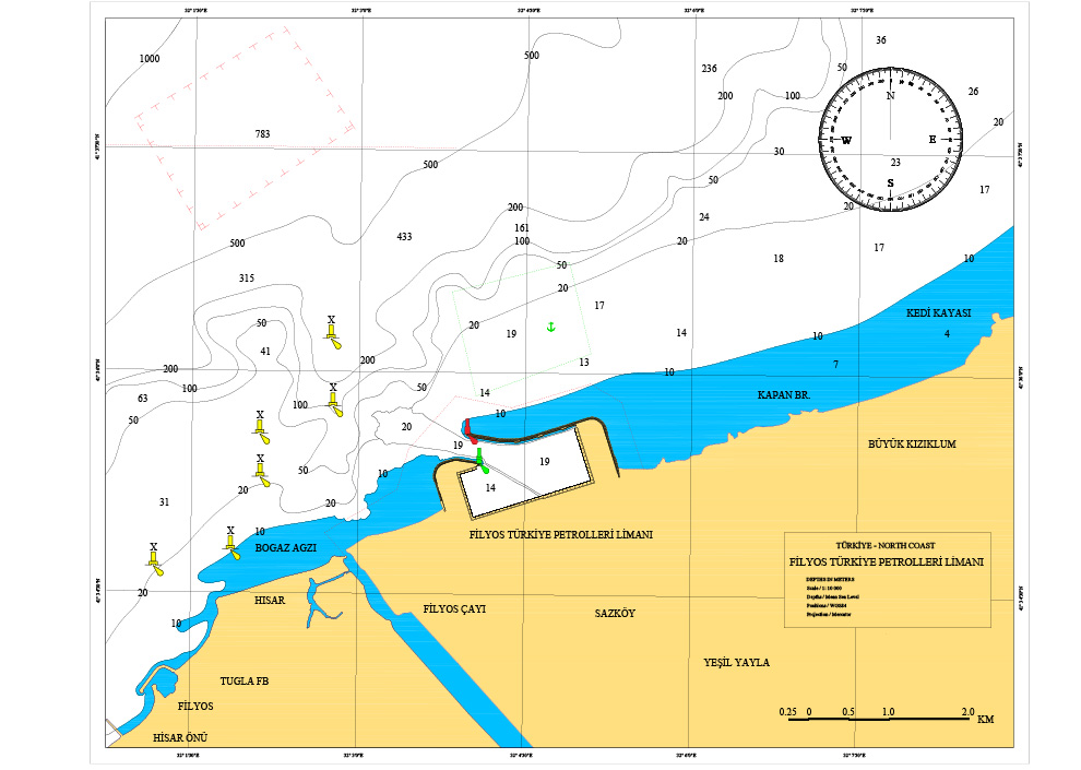 The chart of our Filyos Türkiye Petrolleri Port has been prepared to support safe navigation during approach, berthing and departure manoeuvres. Serving as a navigation guide for ship masters and pilot captains, this chart is particularly critical for vessels calling at the port for the first time.